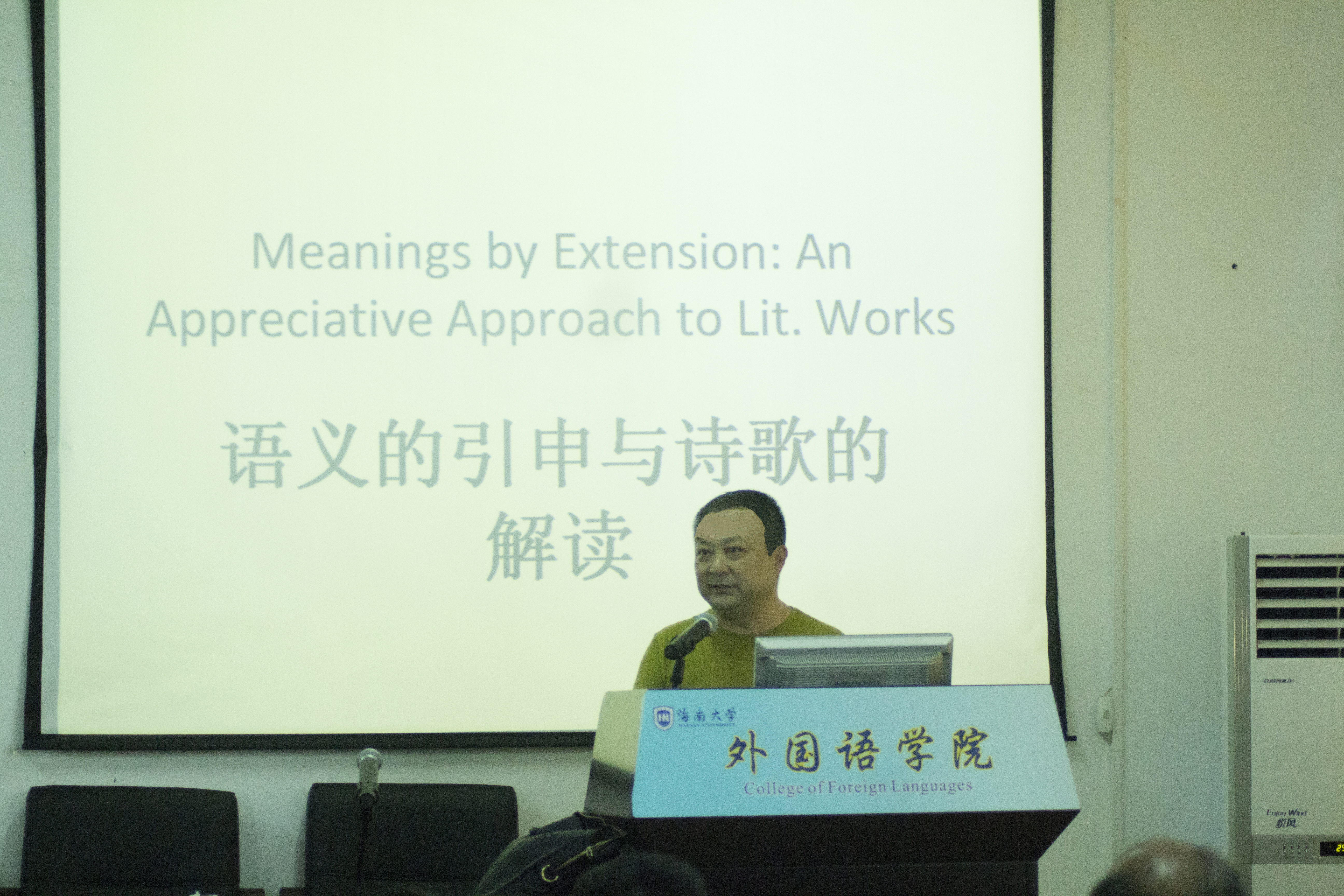 2016年11月15日下午3时社科楼C-115,威廉体育williamhill“南冥坛席”学术沙龙第十九期如期而至。本次沙龙主邀嘉宾为威廉体育williamhill彭晓华副教授,讲座主题为《语义的引申与诗歌的解读》。威廉体育williamhill杨国良教授主持,外院全体师生到场参加。 杨教授以中华翻译史,从佛经翻译涌现出的鸠摩罗什、玄奘到近代翻译大家使用的翻译策略,包括严复的“信达雅”,钱钟书的“化境”等引出合理理解和翻译文学作品的重要性。 讲座伊始,彭晓华副教授指出,解读文学作品旨在通过联想、“引申”、审美判断等发现和建构作品意义,反映、实现、丰富文本。中国传统诗歌中的“比”和“兴”,就是借助形象比喻,突出所言之物,使具象事物抽象化,规律普遍化。正如“希腊三杰”之一的亚里士多德所说,诗歌(文学)相比历史更富哲学性、更严肃真实。彭晓华副教授接着阐释了文学文本的可读性和可写性,其解读过程包括被动地接受文本“原意”的一般性阅读,通过研究词语搭配,句式句群,语气修辞,结合语境重新定义语义的细读,以及文学批评三个步骤。他还结合英国语言学家Geoffrey Leech的语义类型分类,概念意义和联想意义,认为只有先了解本义,通过语境理解文学文本,才可在语义发生“变脸”后,理解文本引申义。最后,彭教授指出了大家翻译时因未了解民俗,导致译文错误,须引以为戒。 沙龙交流阶段,在座师生就如何更好地理解文学作品和彭晓华副教授展开探讨,彭晓华副教授认为,理解语义的延伸首先要追本溯源,明确语之本义,其次要结合语境,逻辑通顺地延伸,利用丰富的知识和阅历加强理解。 杨教授最后总结道,彭晓华副教授的诗歌解读就像外科医生解剖麻雀,剖析精细,案例详尽,讲解徐缓,对外院人是一次愉悦的审美经历。不仅阐释了诗歌意义的伸展性,也提出了对文学翻译作品的批判性思考,唤醒在座师生的敏锐感受力。一个半小时的诗歌解读在热烈的掌声中落下帷幕,大家共同期待第二十期学术沙龙的精彩开讲。 撰稿:2015英语口译 王旭