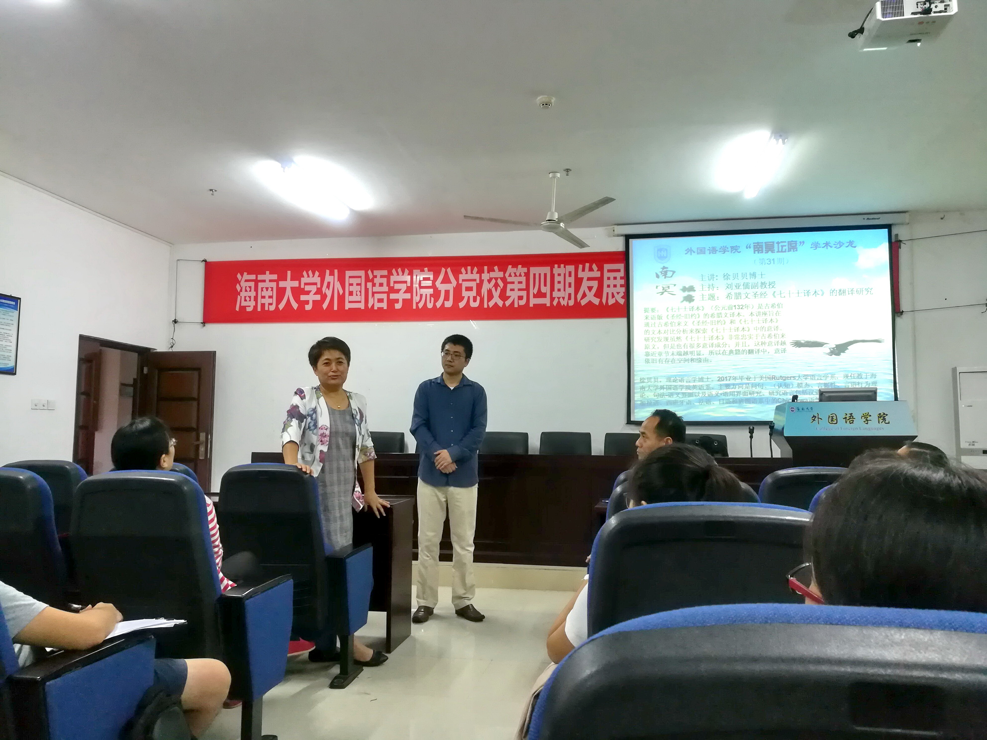 2017年11月14日下午三点,威廉体育williamhill“南冥坛席”第三十一期学术沙龙在社科楼C-115如期举行。本期沙龙的主讲人为理论语言学博士徐贝贝,主题为“希腊文圣经的《七十士译本》的翻译研究”,沙龙由刘亚儒副教授主持。