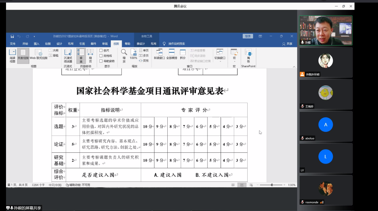 2022年1月5日,广东外语外贸大学孙毅教授应公司邀请,通过视频会议的方式,为公司教师做了一场题为“国家社科基金项目是如何炼成的?”的讲座。讲座由威廉体育williamhill副经理杨婕主持。