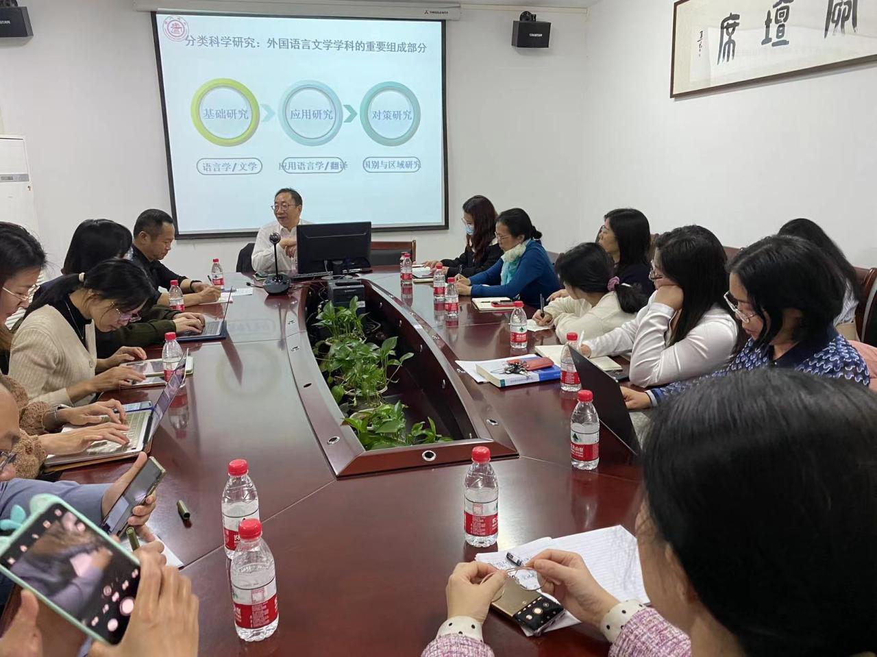 彭教授指出分类科学研究是外国语言文学学科的重要组成部分,简要介绍了外国文学与比较文学、翻译学、国别与区域研究前沿。以量子理论这一新颖角度切入,通过与牛顿思维的对比,指出量子思维对自然科学以及文学研究的影响。通过跨学科渗透,促进学科交叉发展,理论创新与学科转型以及研究关系转向。