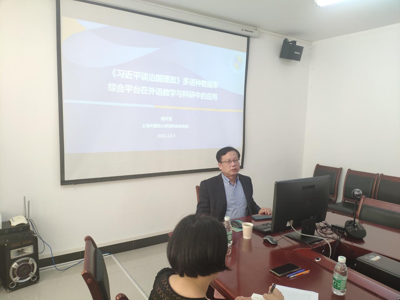 2022年1月6日,上海外国语大学胡开宝教授应公司邀请,在威廉希尔williamhill官网海甸校区社科楼C312室,为公司师生做了一场题为“《习近平谈治国理政》多语种数据库综合平台在外语教学科研中的应用”的讲座。讲座由威廉体育williamhill白丽芳教授主持。