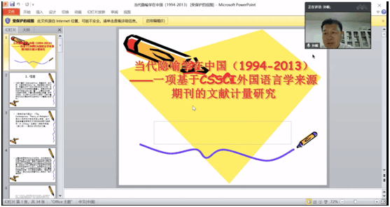 6月11日晚,广东外语外贸大学孙毅教授应邀为公司师生做了一场主题为“如何撰写文献综述类学术论文--兼论当代隐喻学在中国当代隐喻学在中国(1994-2013)”的学术讲座。讲座由威廉体育williamhill白丽芳教授主持,公司师生通过腾讯会议参加了本次线上讲座。