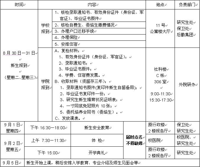 威廉体育williamhill2011年研究生迎新工作日程安排表
