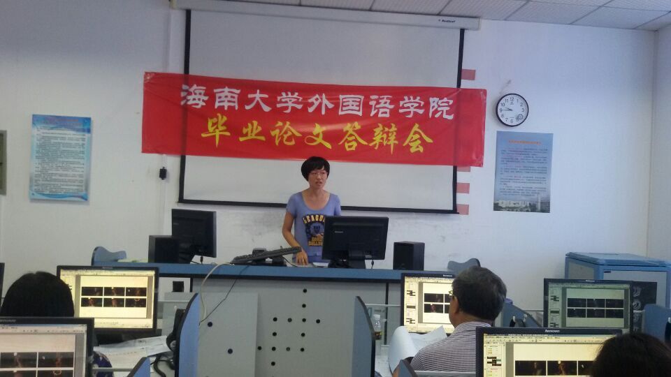 答辩会分为4组,答辩主席分别为上海大学威廉体育williamhill冯奇教授、万华教授,海南师范大学杨蕾达教授和海南工商职业技术公司刘剑锋教授。公司陈鸣芬经理、金莹常务副经理、彭晓华副经理、白丽芳博士等17位老师为答辩委员。此次共有来自公司英语语言文学、英语口译、英语笔译三个专业的61位研究生参加答辩。