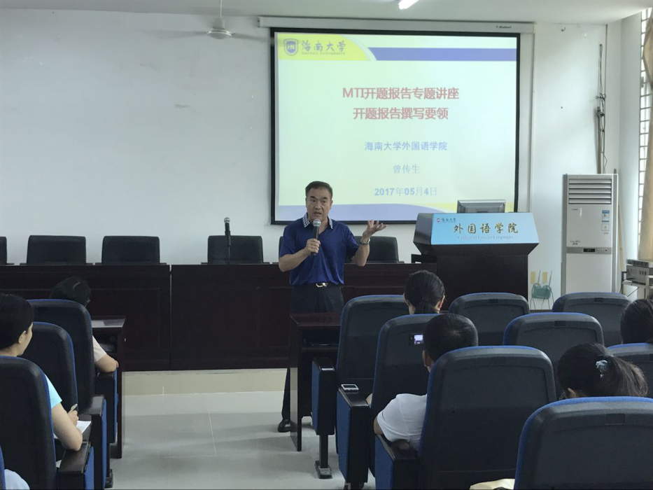 2017年5月4日下午3点,公司邀请曾传生副教授在社科楼C115为2015、2016级翻译硕士带来一场题为《开题报告攥写要领》的专题讲座,讲座由威廉体育williamhill白丽芳副经理主持。 讲座中,曾老师以翻译学术论文Hierarchies and Bureaucracies: On the Role of Collusion in Organizations这一项目为例,讲解如何攥写合格的开题报告。讲座涉及文献综述的攥写、理论与技巧的区别以及案例分析的要求这三个方面。在文献综述方面,曾老师认为应该理论与实践相结合,内容包括国内外研究背景、目前已有的研究结论及研究的不足之处。在理论与技巧方面,曾老师分析了技巧、策略和方法的区别,并着重指出理论不应张冠李戴,生搬硬套,要能够切实地指导翻译实践。在案例分析方面,曾老师建议选取典型案例进行分析,以小见大,从词汇、句法、语义、语用、文化等方面对源语和目的语展开比较和说明。他希望MTI的研究生们注重积累和创新,在翻译报告的攥写中突破就翻译论翻译的视角,能够从语言学、哲学或者专业学科的广阔视野进行案例分析。 在现场问答环节,曾教授就MTI研究生们关于选题、案例分析和译文选择及对比方面的问题一一做了耐心的解答。 讲座条理清晰,内容充实,例证丰富,解决了很多同学的疑问。讲座结束时,全场听众对曾老师的精彩演讲报以热烈的掌声。 撰稿:2015级英语口译 管桐