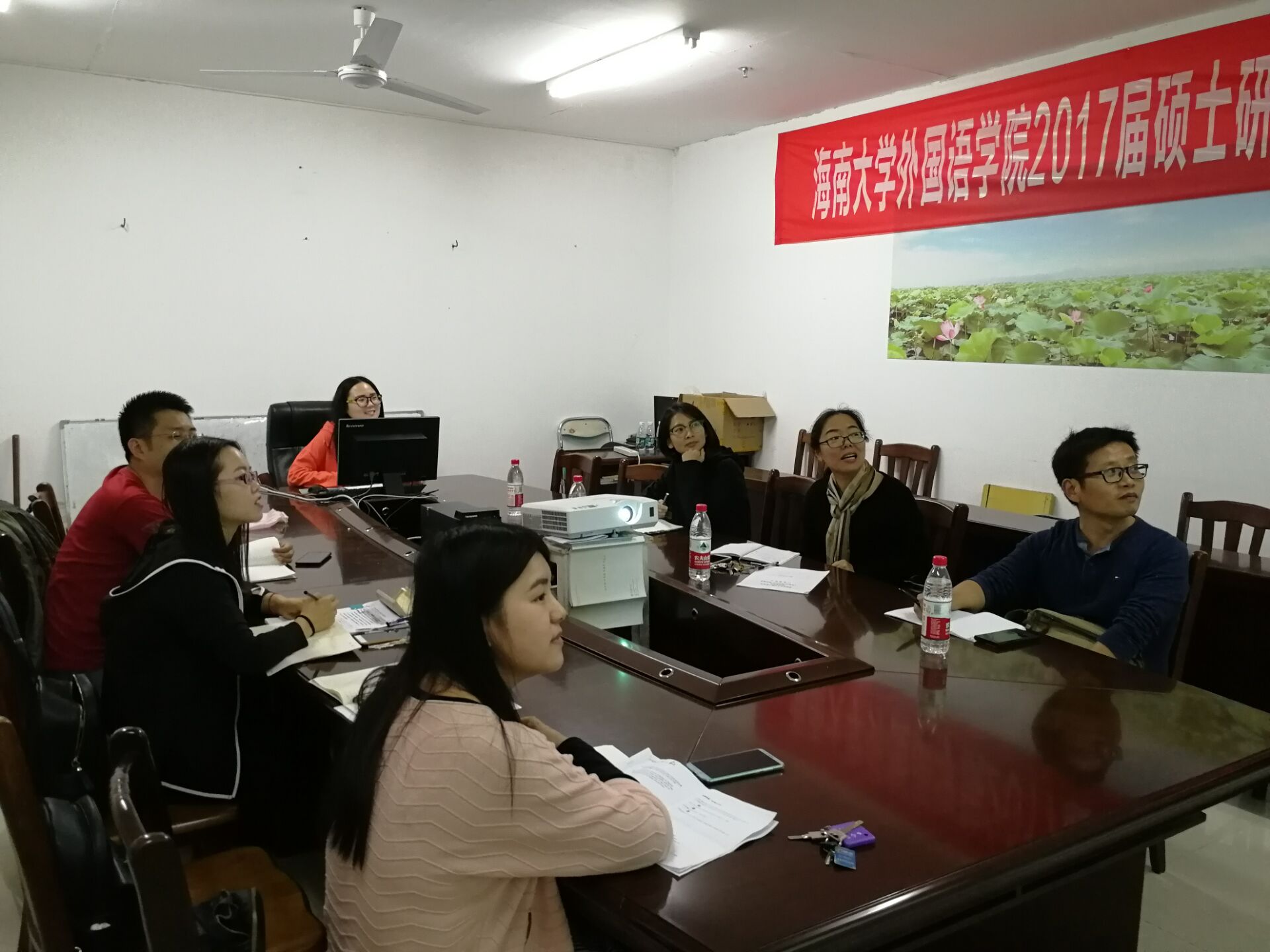首先,主持人陈传平对各位导师的到来表示热烈欢迎。随后,李韵秋和朱小茜同学分别向大家呈现了她们精心准备,丰富精彩的研究汇报。李韵秋同学围绕“救火-成因的动词体态及致使结构”这一选题展开陈述,尝试运用认知语义学的体及致使结构结理论对“救火”“养病”“抢险”等形义不匹配的语言现象进行阐述,并辅以动词体态图式和收集到的语料对形义不匹配的动宾构式进行了分析说明。朱小茜同学则带来了以生态教学法为研究主题的实证性研究汇报,通过简明的文献综述指出以往相关研究在方法,对象等方面的不足之处,提出她将更加重视多元化的研究范式,更加具体化、综合化的研究对象,即:从生态教学法视角,探讨经济,社会,社会等因素对课堂教学实践的影响,关注中小学教师专业发展和教学法使用情况。