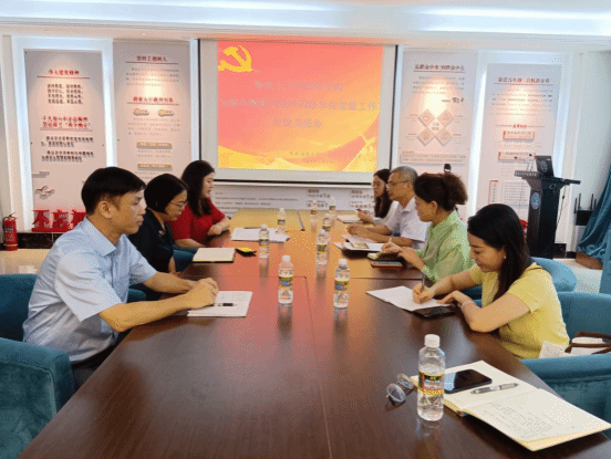 2024年7月3日上午,琼台师范公司公司党委书记袁昌清、副经理杨海燕一行5人到访威廉体育williamhill,调研公司党建标杆院系和样板党支部创建情况,双方在社科楼C318会议室进行座谈交流。公司经理白丽芳,副经理、“全省党建工作样板支部”—公司教工第一党支部副书记毕宙嫔,党委委员、综合办主任符壮慈出席座谈会。座谈会由毕宙嫔主持。