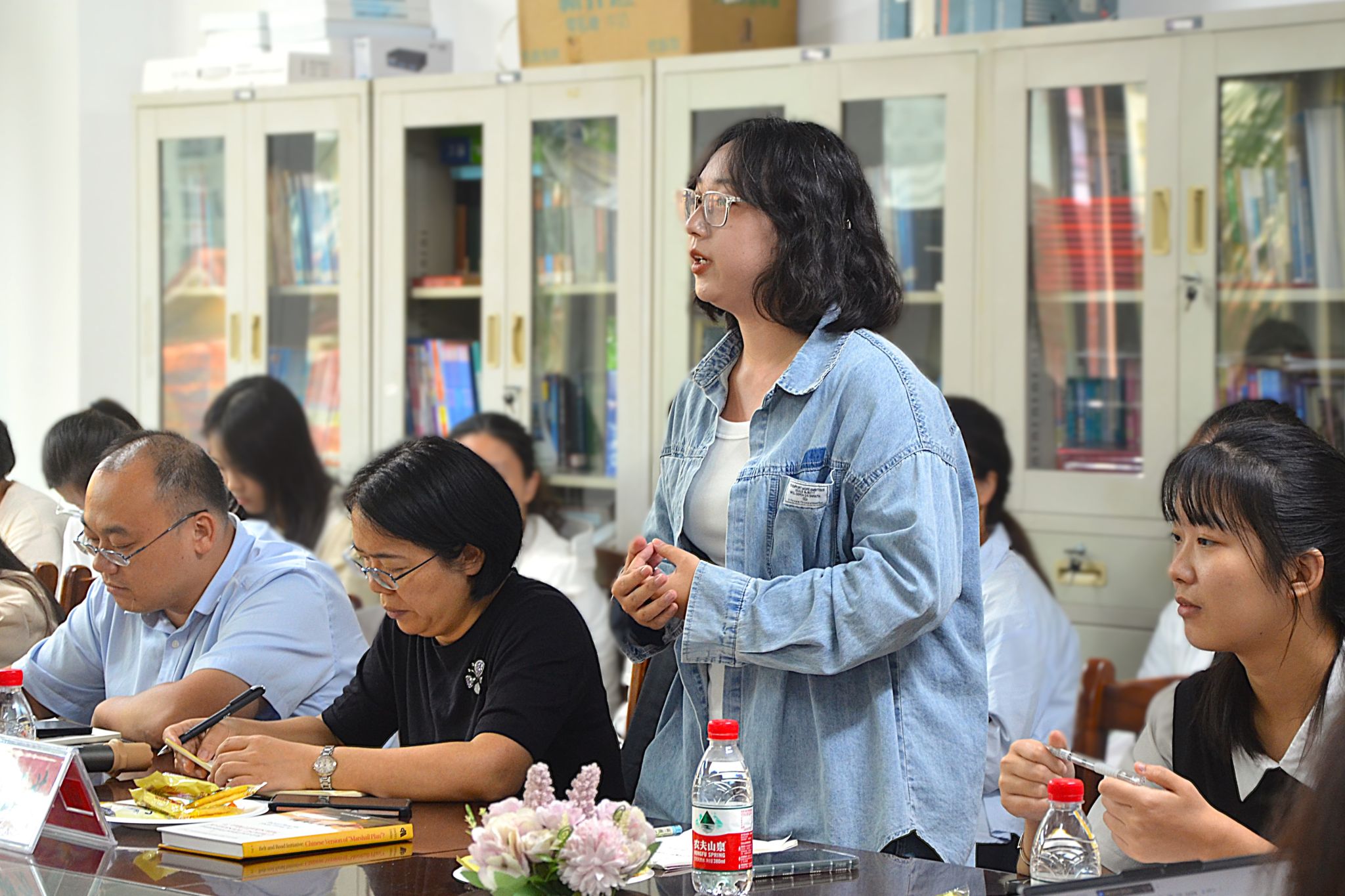 冯达旋的座谈以提问形式展开。他从通晓的几种语言和方言说起,介绍了自己的求学经历,分享了英语学习的经验,即深入阅读《纽约时报》、背诵《双城记》等英文名著、坚持用英文写作。他告诫在座的员工:外语学习没有捷径,日积月累才能学有所成。在问答中,冯达旋结合自身在物理学、数学、地缘政治学等学科的跨界探索,强调了成长的非线性,鼓励大家对未知保持好奇心,并敢于追根究底,实现不同学科的自然融合。此外,冯达旋还与大家深入探讨了中华文化典籍的价值、人工智能的挑战、“一带一路”带来思维方式的转变等问题。冯达旋对外院9位师生翻译他所著《中国千年之变——“一带一路”倡议》一书予以高度评价并表示感谢。