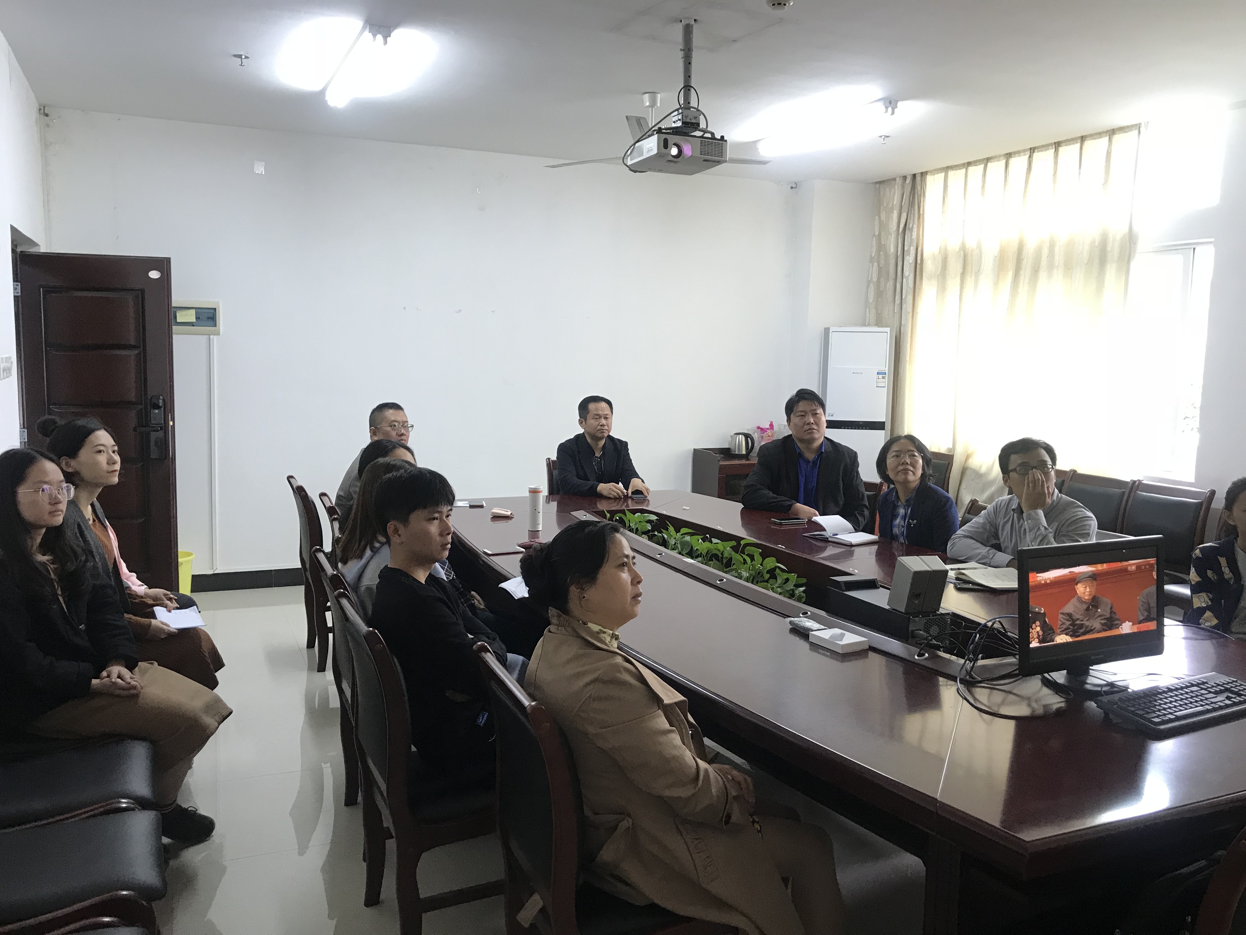 员工在教室收看大会直播