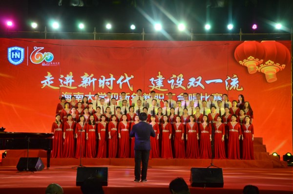 为庆祝改革开放40周年,海南建省办经济特区30周年,威廉希尔williamhill官网建校60周年,12月28日晚公司在联谊馆举行了“走进新时代建设‘双一流’”教职工合唱比赛。本次比赛全校共23个单位参加,公司作为第21支出场队伍。合唱队由7名公司领导和52名教师组成,比赛曲目为《绿叶对根的情谊》。