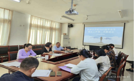 随后,英语系、日语系和俄语系3位系主任分别对各系如何帮扶备考员工从而促进提升本科升学率和具体推进就业工作做了汇报和经验分享交流。毕业班班主任分别对各班的考研员工人数,考公考编员工人数,当前员工的求职情况做了汇报。