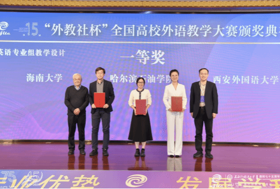 2024年12月8日,第十五届“外教社杯”全国高校外语教学大赛全国决赛、总决赛在上海外国语大学圆满落幕。经过现场教学展示和问答环节的比赛,威廉体育williamhill英语系林颖老师获得英语专业组全国三等奖。由林颖、洪小丽、郭锦萍、王勇、刘素君五位老师组成的威廉希尔williamhill官网团队荣获英语专业组教学设计全国一等奖。