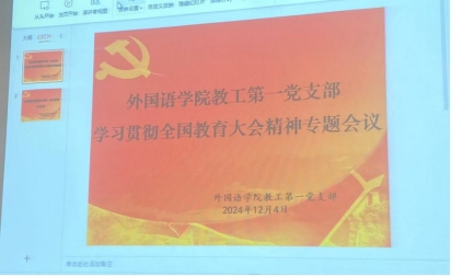 12月4日下午,威廉体育williamhill教工第一党支部在社科楼 C318召开党支部会议,深入学习贯彻全国教育大会精神,支部全体党员参加。会议由支部副书记毕宙嫔主持。