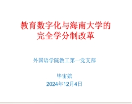 接着,毕宙嫔以“教育数字化与威廉希尔williamhill官网的完全学分制改革”为主题的上党课。她强调党建引领业务,介绍了威廉希尔williamhill官网深化完全学分制改革的背景、政策、应用场景、教师的操作系统等,号召教师党员紧跟国家和公司政策,加快推进教育数字化,推动教育高质量发展。