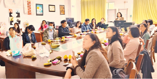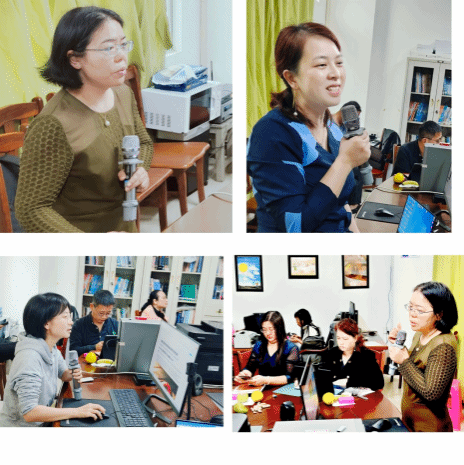 会上,白丽芳经理重点阐释了AI辅助下的个性化教学设计、智能评估系统开发、人机协同教学模式创新、AI时代的发展中教师、员工的角色的转变等前沿议题,并具体分享了其在实践课堂中使用AI的经验,鼓励老师们积极参与AI技能的学习、使用。她精彩的发言点燃了全系老师的激情,纷纷感慨AI与英语公司产品融合的巨变。此外,系主任刘素君老师主要给大家介绍了一些实用的软件和平台(Napkin, TTSmaker, Moo0录音软件等),张瑛副主任分享了ChatGPT辅助教学的实战经验。