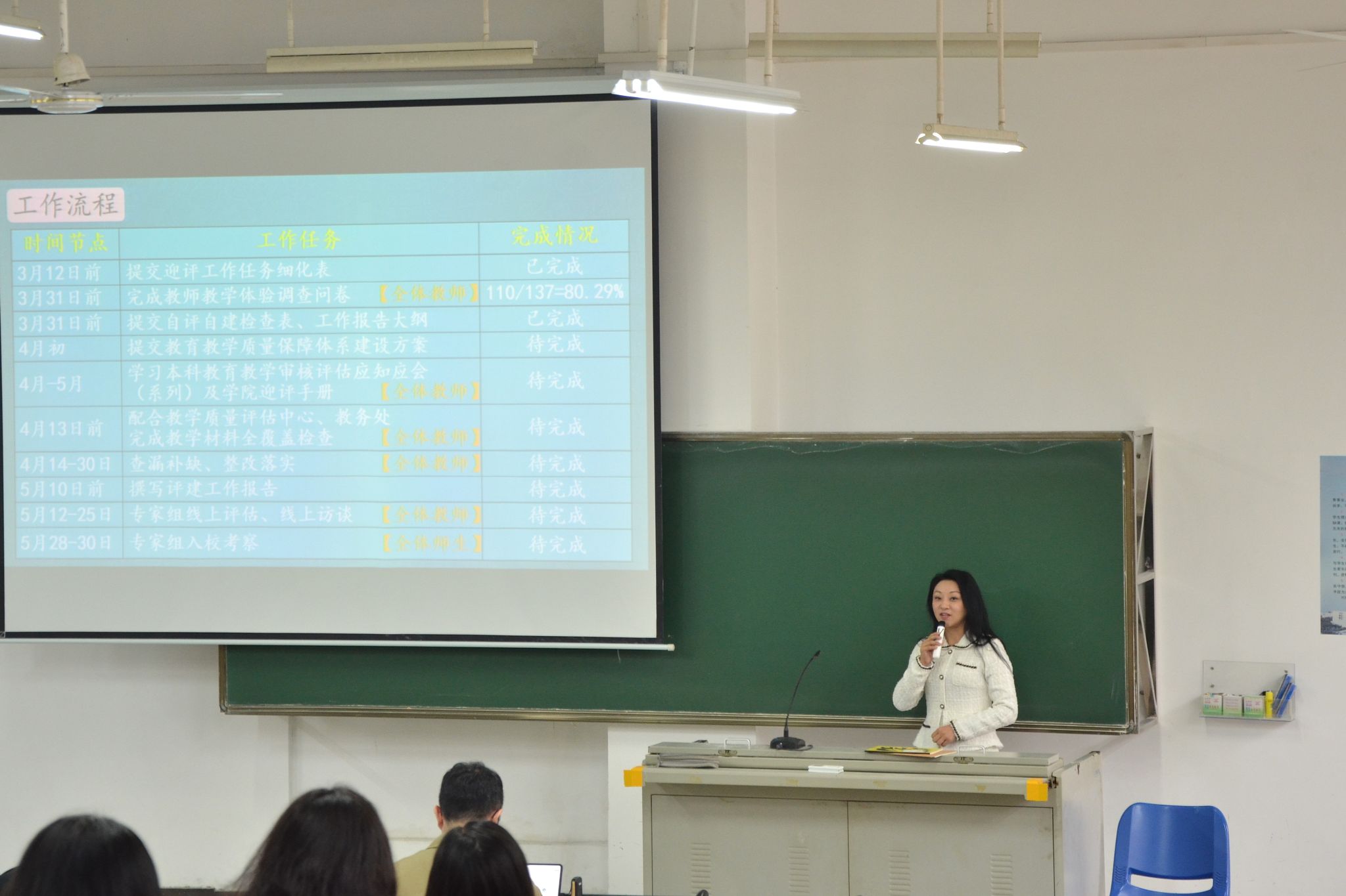 随后,副经理杨帆就评估工作具体安排进行部署。她详细介绍了“自评──专家评审──反馈整改──督导复查”全流程,明确公司当前处于自评阶段,全体教师需按任务细化表配合完成材料检查、报告撰写及《本科公司产品审核评估应知应会》学习等工作。杨帆强调,未来两个月需重点推进教学材料全覆盖核查、完善自评报告等任务,确保评估有序开展。