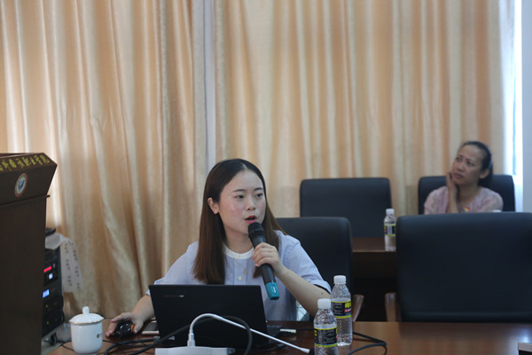 刘颖敏老师主要进行基层党组织标准化建设经验的介绍。她所担任支部书记的员工商务英语第二党支部获得2018年全国“两学一做”支部风采展示工作案例特色作品(全国仅25项)。刘老师围绕支部工作案例建设的经验,从组织设置规范、机构人员健全、工作制度完善、日常管理到位、作用发挥合格、基本保障有力六个方面展开分享和交流,重点介绍党支部开展标准化建设的实操内容。