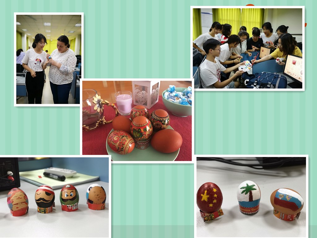 经过精心筹备,外教林心语老师带领2016级、外教库里科娃老师和吕卉老师带领2017级同学开展了系列活动;吕卉老师做了《俄罗斯传奇——法贝热彩蛋博物馆》讲座,介绍了俄罗斯复活节相互赠送彩蛋的习俗,因为彩蛋代表着人们对彼此美好的祝愿,还展示了在法贝热博物馆拍摄的罗曼诺夫王朝精致彩蛋图片。