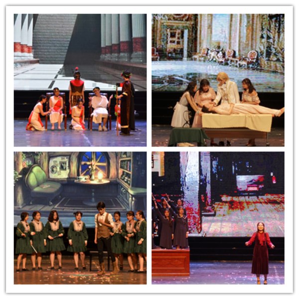 第二篇章中,2018级外国语言文学类11班以独特的风格诠释了古希腊经典悲剧《酒神的伴侣》,成功地演绎出人性的疯狂;2018级外国语言文学类10班带来的迪士尼经典作品《沉睡魔咒》,表达了唯爱之心方可改变世界;2018级日语2班演绎的《白雪王子》,通过梦幻的童话故事展现了人性的真善美;最后,大赛在2018级外国语言文学类2班精彩绝伦的《O Capta, My Captain》中落下帷幕。