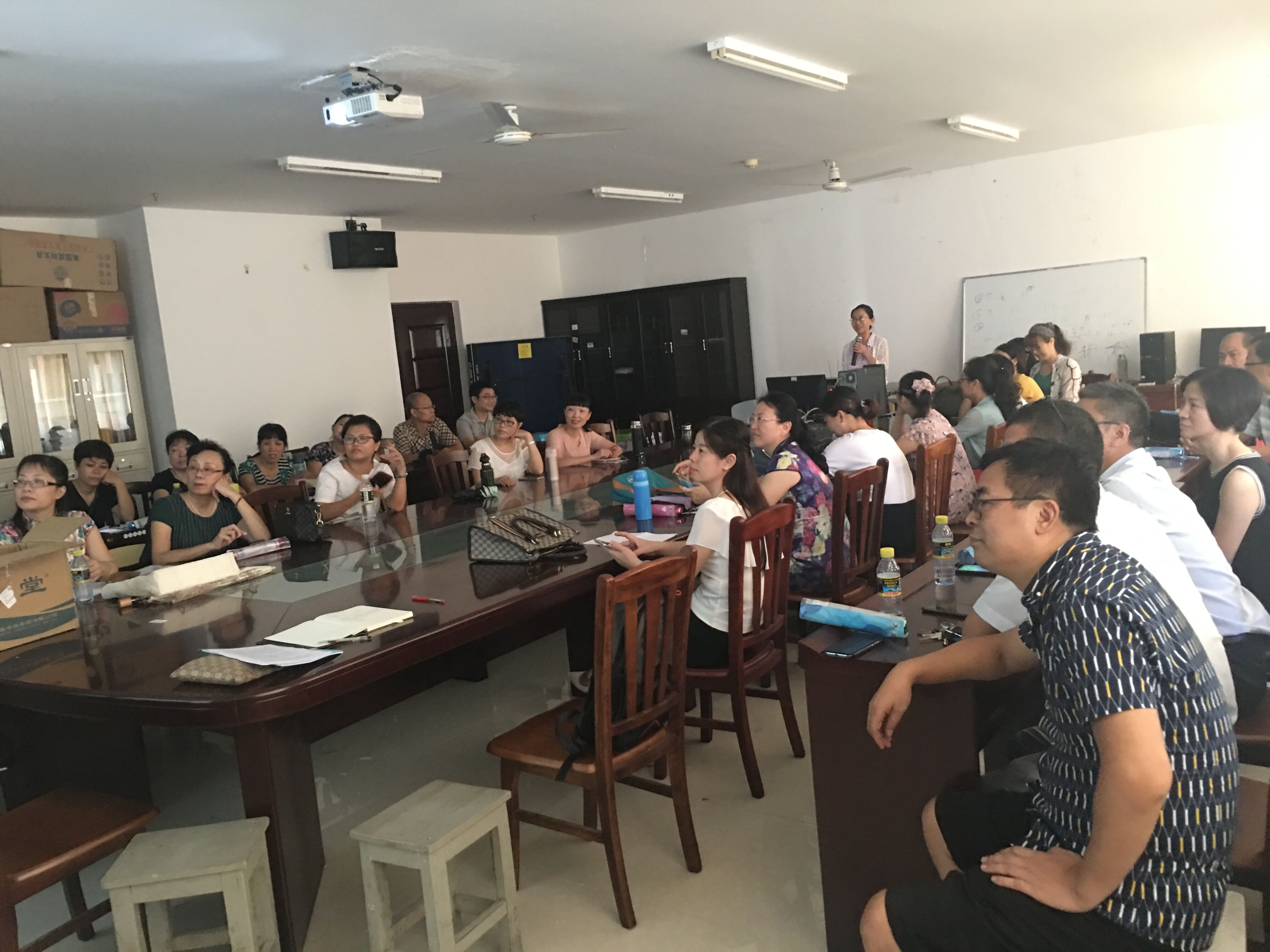 首先,夏美丽老师对上学期的教学工作做了总结和汇报,对本学期的工作进行了部署和展望,希望老师们积极投入教学,本学期能一如既往,再接再励。此外,夏美丽老师还对教师暑期学习和调研情况做了汇报和总结,分享了国内14所兄弟院校大学英语教学的改革进程、改革思路、改革趋势和经验教训,为我公司的大学英语教学和教改工作提供了有效的借鉴。