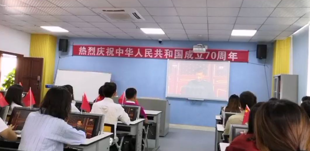 2019年10月1日,是中华人民共和国成立70周年纪念日。上午8点30分,威廉希尔williamhill官网公司党委在社科楼C519组织师生党员代表和员工骨干集中观看新中国成立70周年庆典,欢庆伟大祖国生日。公司党委书记黄丽芹,经理金山,副经理金莹、覃成海,党建组织员符壮慈参加直播观看活动。