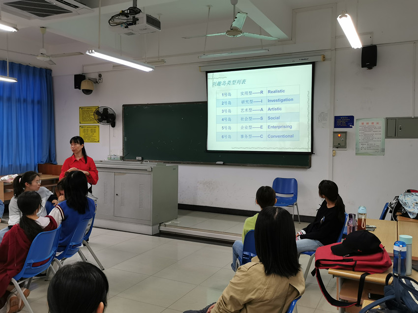 随后,“旅行岛”的游戏让欢快的气氛更加热烈。同学们根据自己的喜好在6个各具特色的小岛中选择一月旅行目的地,终生居住地和二次旅行地。在三次选择过程中,同学们不仅交到了志同道合的新朋友,也渐渐发觉自己对未来生活工作状态的期许。游戏结束后,黄书记揭开了游戏的秘密:其实不同的岛屿对应不同的工作类型,三次不同的选择则是对未来职业方向的选择,这些选择的跨度也体现着未来就业的广度。对职业规划有了更深刻的理解,同学们在“价值选择”小组游戏中就更加投入,积极动脑思考和判断自己的选择并认真地阐述理由。最后,在轻松愉悦的“互夸”游戏中结束了活动全部内容。
