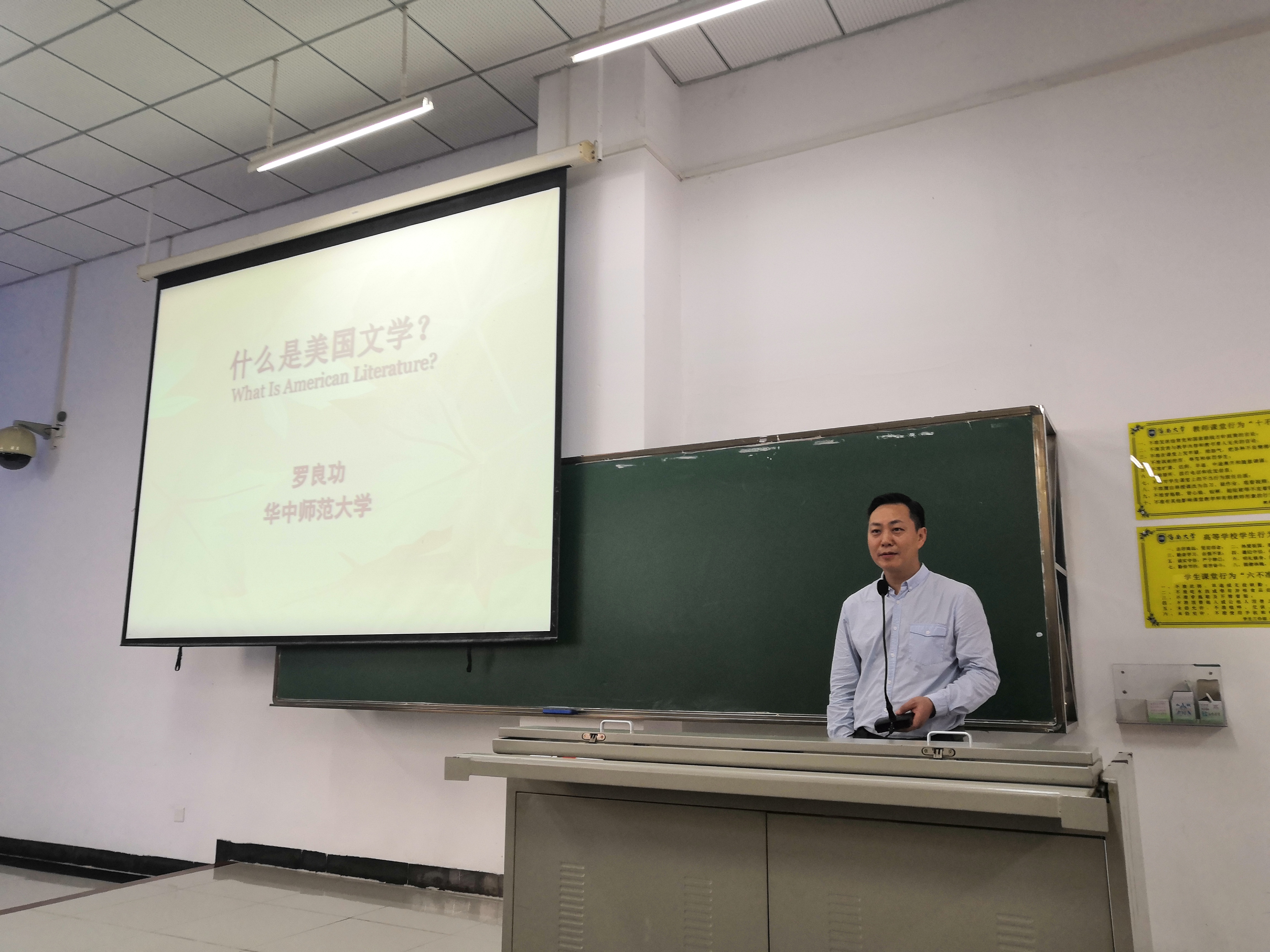 在《什么是美国文学》的讲座中,罗良功教授从“美国文学的定义”、“美国文学观”、“美国文学的源与流”等多个方面,为在场师生全面系统地展示了美国文学的独立之路和多样化特征。讲座伊始,罗教授介绍了美国文学发展脉络,列举了推动美国文学走向独立的重要作家,阐明了美国文学史与国家叙事的联系。之后,他指出,一个国家的文学,首先应该能够反映国家的整体形象,因而,从国家叙事的层面上来审视,美国文学独立之路并没有在白人作家的脚下走完,剩下的一部分是由美国其他族裔作家们帮助完成的。从早期的印第安文学、殖民地时期文学,直至现当代文学,美国文学经历了漫长而又复杂的独立之路,开辟了多样丰富的主题和流派,展现了美国人民追求自由的性格特征,取长补短的优良传统。罗教授将美国文学的发展史和代表作品娓娓道来,让在座的老师和同学对美国文学在世界文坛中的存在价值和学术贡献有了更加深刻的认识。