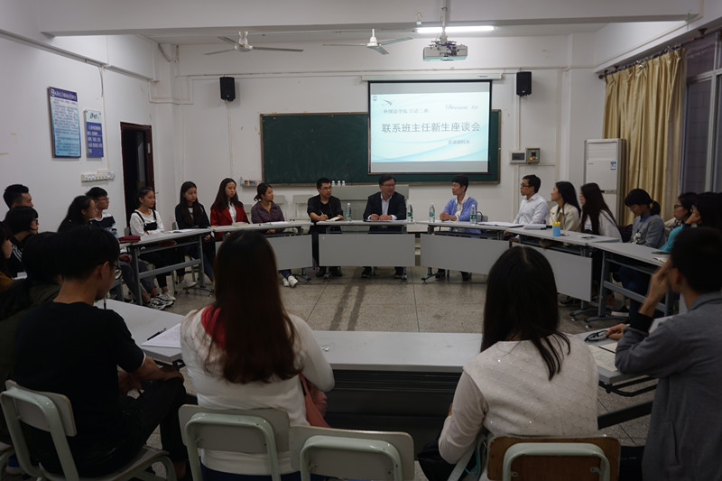 11月28日,为践行十九大精神,深入一线了解员工的需求与困难,公司党委常委、副董事长梁谋以联系班主任的身份同威廉体育williamhill2017级日语二班全体同学召开新生座谈会。座谈会在城西校区教学楼举行,校办徐望来老师,班主任李明玲老师,辅导员吴剑锋老师一同参加了座谈会。