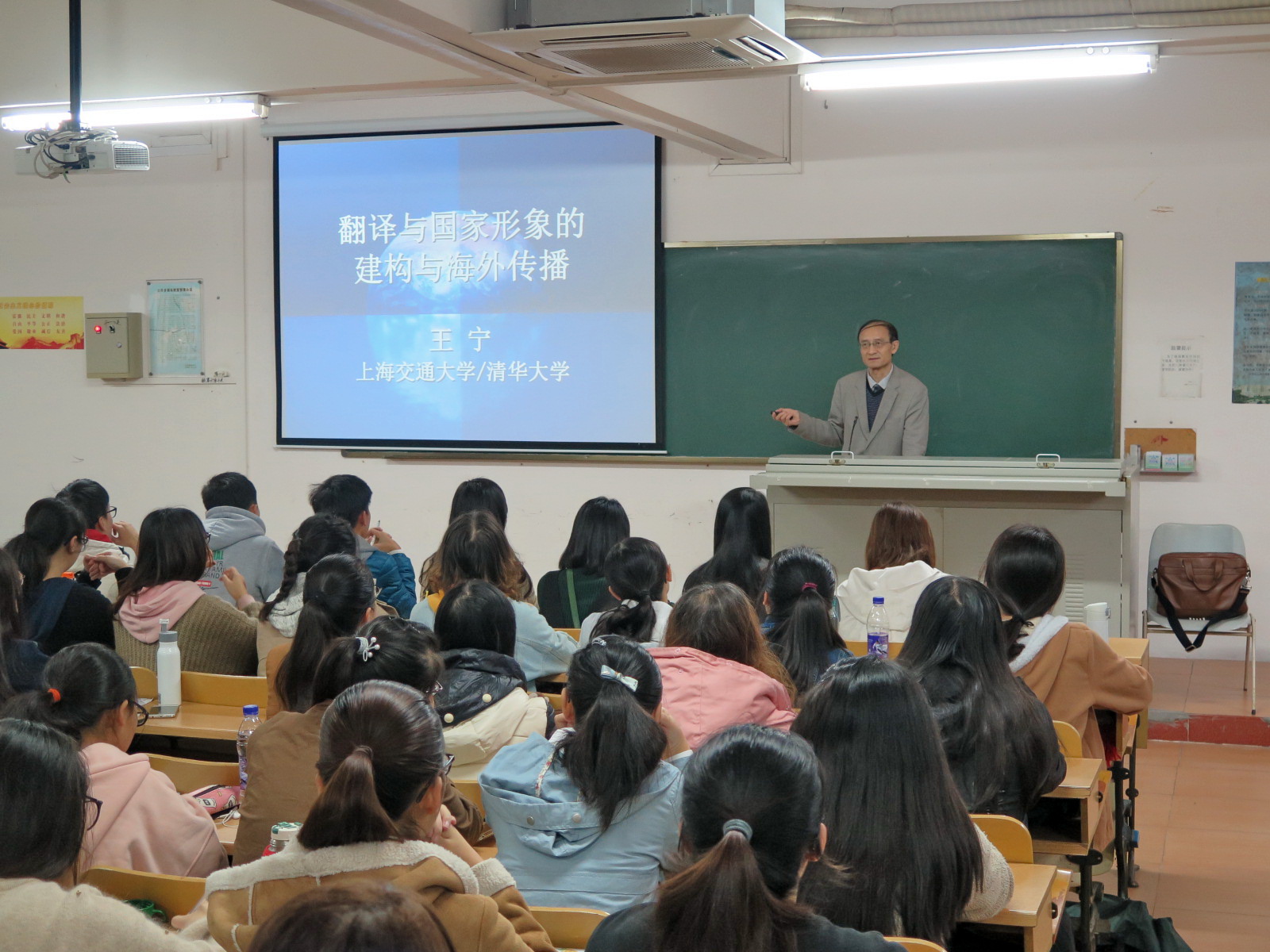 在题为“翻译与国家形象的建构与海外传播”讲座中,王宁教授从国家形象及其传播与再现、西方的东方学和汉学批判以及西方人眼中的中国形象之演变三个方面进行阐述,论证了文化翻译对国家形象建构的重要性。他指出,西方人眼中的中国和中国人的形象并非一成不变的,而是在不断地发展演变的,准确地把握这种历史的演变对于我们制定自己的对策不无裨益。而对于翻译研究者而言,不仅要研究传统的以语言作为表达媒介的翻译,更要关注作为国家形象建构之载体的文化翻译,这样才能用世界通用的语言来讲好中国的故事。