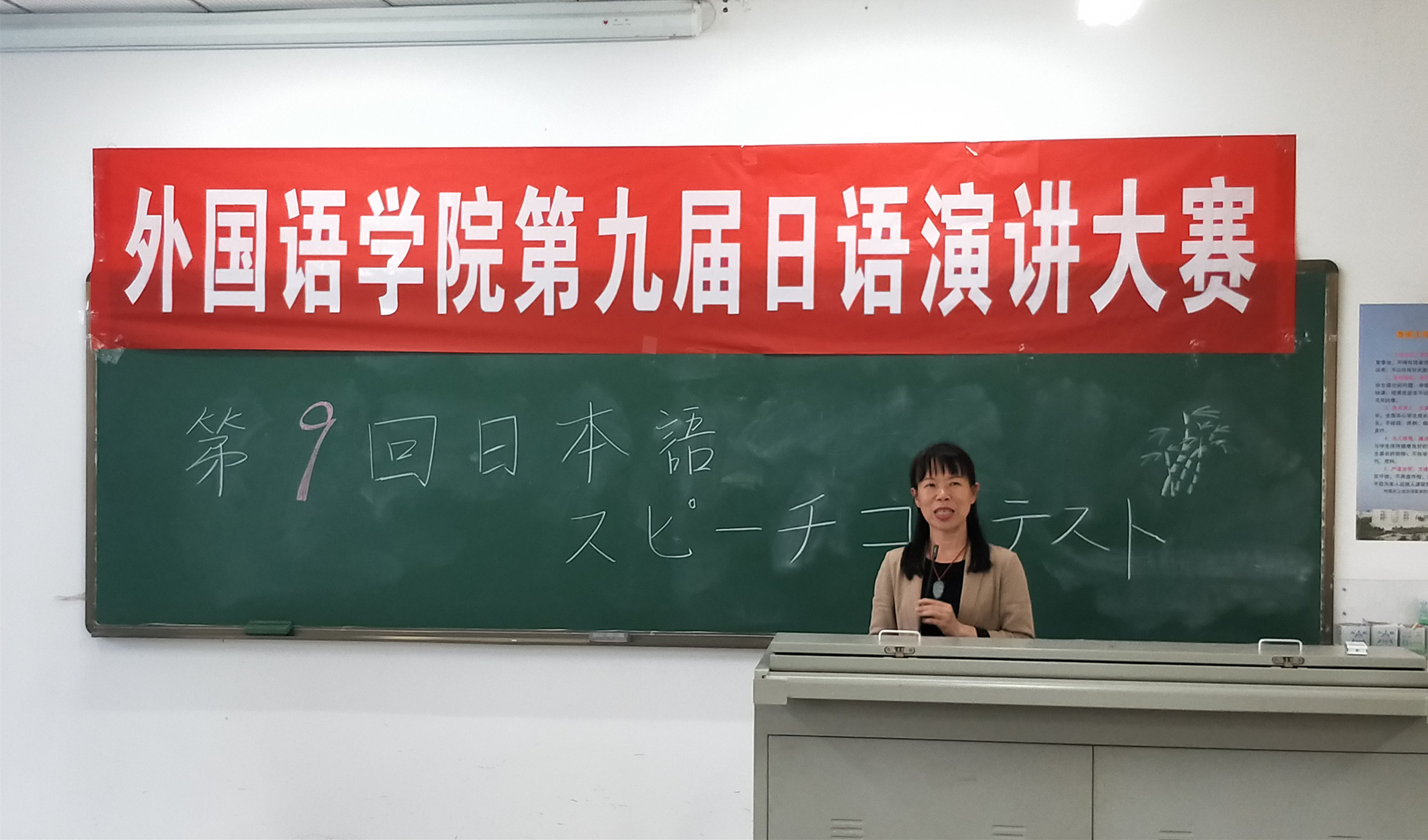 2018年4月10日下午,威廉体育williamhill在5教102教室举办第九届日语演讲比赛暨“第十三届中华全国日语演讲大赛”华南赛区预赛选拔赛,日语专业15级、16级共计9位选手参加了本次比赛。本次比赛的评委由日语系教师担任,公司党委书记黄丽芹出席并致开幕辞。