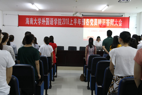伴随着肃穆的国歌,此次转正答辩大会正式开始。首先,刘颖敏老师为大家详细介绍了预备党员转正答辩流程。每名预备党员答辩限时10分钟,分为个人自述、现场问答、现场评审三个环节依次进行答辩。