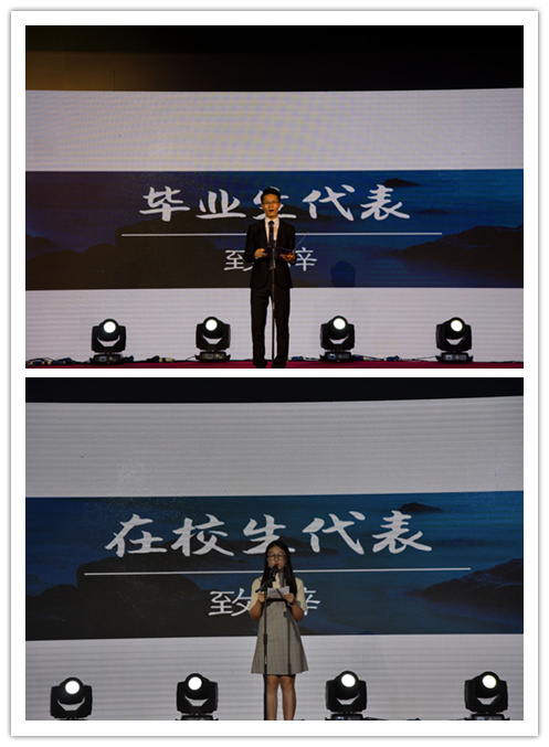 毕业生代表陈俊甫和在校生代表朱田媛在晚会开始前分别作主题发言。