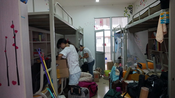 搬迁同学在宿舍整理行李