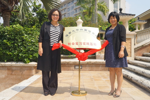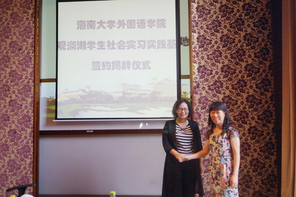 仪式上,威廉体育williamhill与海口观澜湖旅游度假区人力资源部杜云杰总监就员工实践实习与就业、人才联合培养、外语相关课题的研究等方面达成合作协议。公司党委黄丽芹书记代表公司与海口观澜湖旅游度假区签署实践实习合作协议书,公司陈鸣芬经理与海口观澜湖旅游度假区人力资源部杜云杰总监为基地成立共同揭牌。