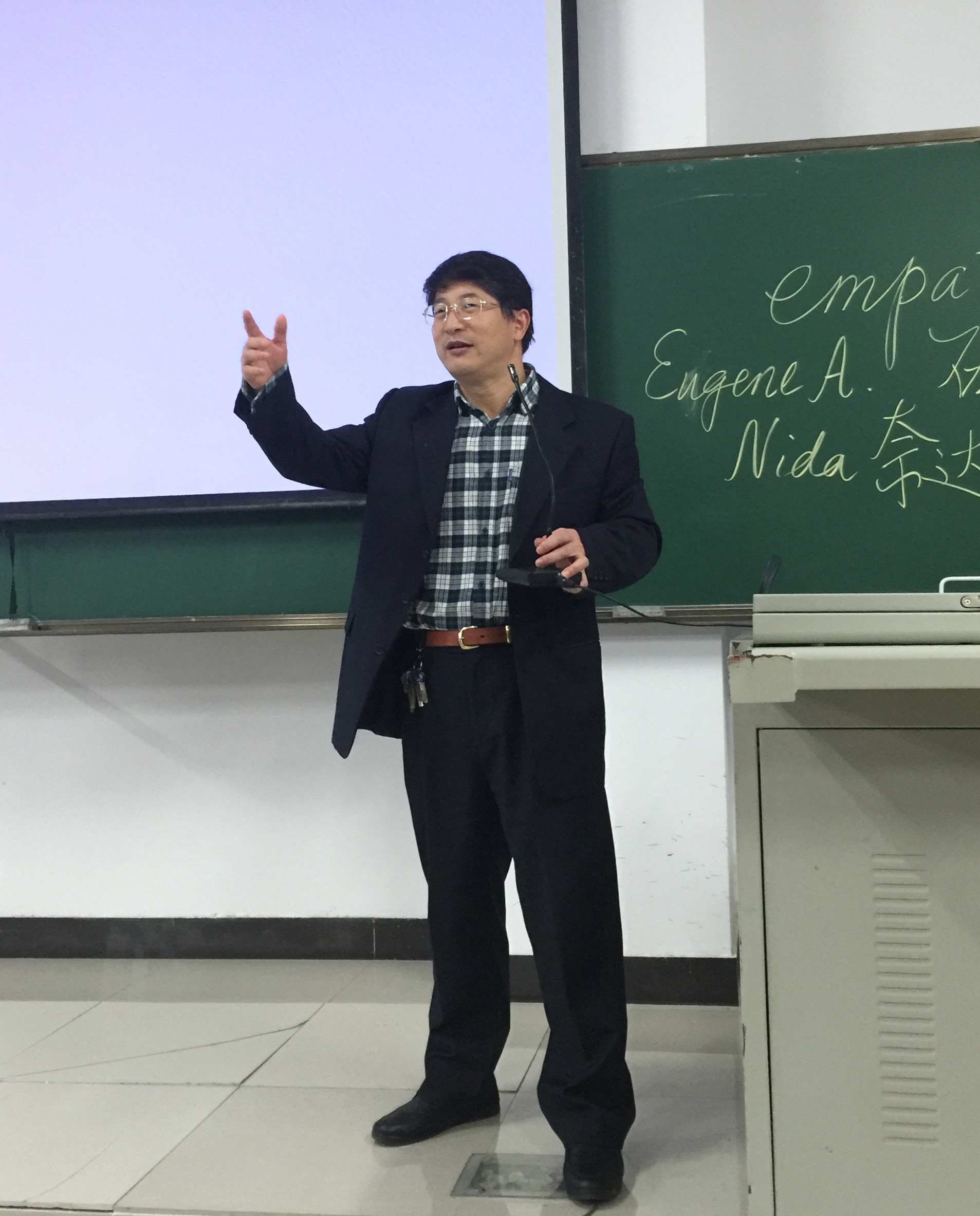 李明教授从翻译的角度谈跨文化交际,主题是“情动于中而行于言——小说翻译中的移情与表达”,讲了三个大方面,分别是前言、小说移情的理据、小说翻译中的移情实例。他认为,做好翻译并不是翻字典查单词简单堆砌这么浅显,真正好的翻译作品是需要很多知识背景的,而跨文化的知识与语言学课程的学习是尤其重要的,只有雄厚的知识基础,才能在语义语用方面掌握机理并达到成功。在随后的讲解中,他更是着重于“移情”的透析,引经据典,并将员工们日常使用的微信语言加以比较,语言诙谐幽默,贴近生活却又能带领员工的思维步步深入。在互动环节中,同学们更是争相回答问题,课堂气氛非常活跃,同学们精神饱满,并认真做着笔记。