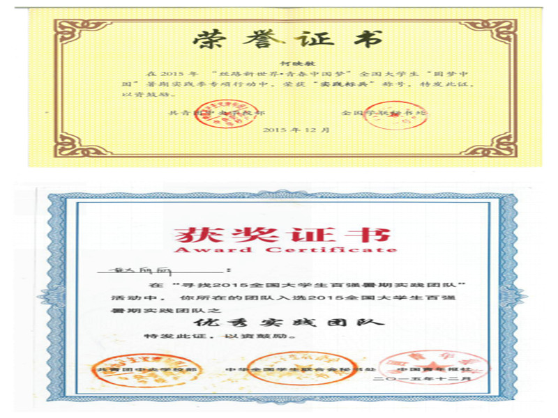 2.由团中央公司部与中青报组织的全国百强暑期实践团队评选中荣获全国优秀实践团队(30支)、全国优秀指导老师;