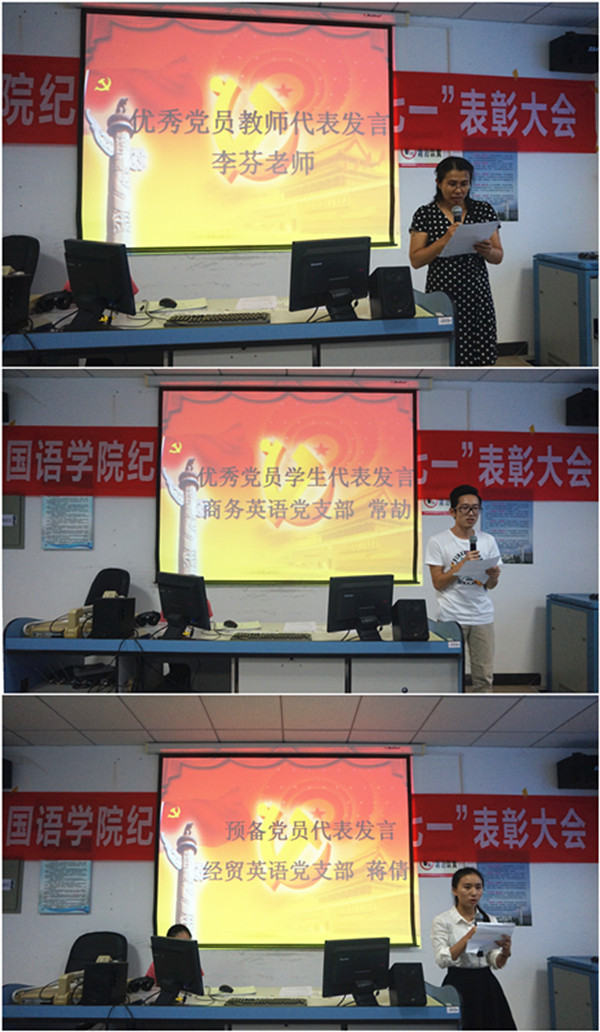 大会在庄严的《国歌》声中拉开帷幕,公司党委何映敏副书记宣读了荣获优秀共产党员称号的员工、教师和先进党支部的表彰文件以及庆祝建党95周年征文比赛获奖同学的名单,并对他们进行表彰。接着,优秀党员教师代表李芬老师上台发言,她从自身教学、公司工作以及生活方面讲述了如何发挥一名优秀共产党员的作用,树立为人民服务的意识;优秀党员员工代表常劼在发言中表明了对党组织的忠诚和热爱,并表示作为一名优秀的共产党员,应该肩负起时代的重任,坚定理想信念,奋发有为,做时代的佼佼者。