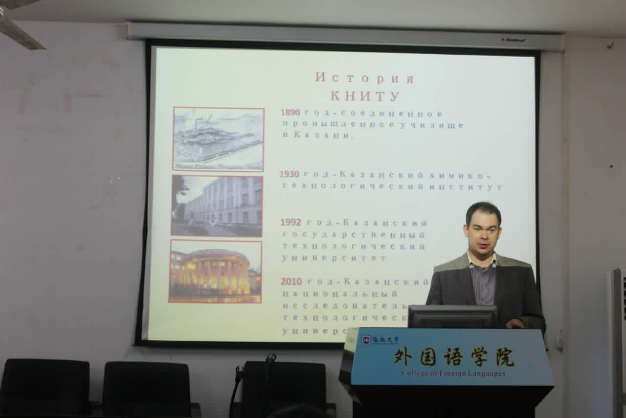 讲座中,Артём Николаевич教授通过向大家介绍喀山与俄罗斯的方方面面,让大家感受到关于喀山与俄罗斯悠久的历史、深厚的文化底蕴、先进的科技成果及独特的城市魅力。