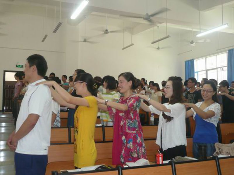 讲座期间,陈老师再次请同学们做了一个有趣的游戏:为自己按摩减压。游戏过后,陈老师中肯的告诉员工干部们,老员工不要以自我为中心,应该学会适应环境、适应社会。