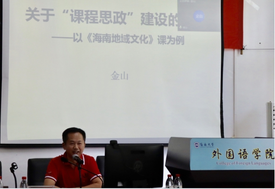 接着,金山经理以“关于‘课程思政’建设的思考--以《海南地域文化》课为例”为题,线上线下相结合,给全院师生分享其对课程思政建设的思考。金经理结合习近平总书记关于“高校思想政治工作会议上的讲话”上的最新精神从“课程思政”的概念的提出及发展到关于“课程思政”建设的思考,厘清了课程与思政的关系,不是“思政课程”,而是“课程思政”,所谓的“思政就是“育人”,塑造人情感、意识,特别是培养人的“三观”,即正确的世界观、人生观、价值观。“课程思政”是每一门课程都要自觉地做好“育人”和“三观”的教育,要做到“润物细无声”,将课程内容与实践相结合,设计好环节,培养员工的家国情怀、民族情怀、时代责任和历史使命。金经理还以《海南地域文化》课程为例,详细解读了如何利用课程教学培养员工的多元文化素养、讲好海南故事。课程思政是一个长期的过程,不会一劳永逸,必须不断总结、不断反思、不断改进,同时教学效果要接受检验,包括短期与长期的检验。课程思政要达到的效果就是将要传达的信息与员工的思想意识必须同频共振,只有产生共鸣,才会被接受。这是每位教师都要思考的问题,对大家非常有启发。