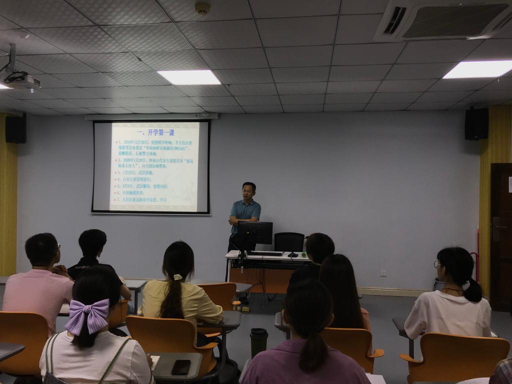2020年9月9日上午,威廉体育williamhill“开学第一课”在社科楼C518教室开讲,经理金山教授为2017级日语专业员工为“弘扬抗疫精神、坚定四个自信”的新学期第一课。
