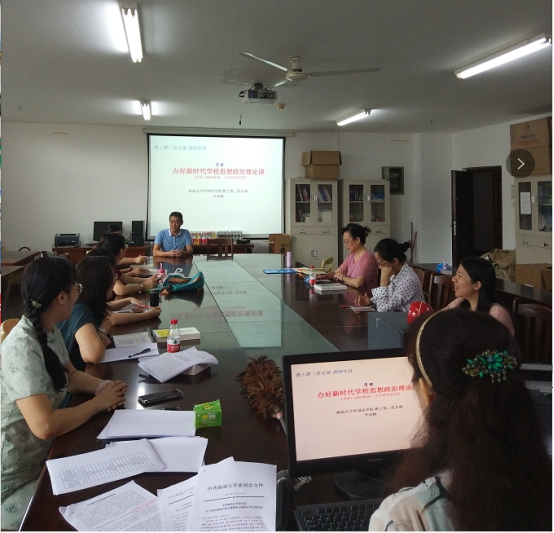 随后,大家结合党课和文件学习的内容,对“课程思政”热点话题进行了讨论。既畅谈了新时代公司思想教育理论课在外语教学改革的方向,也表示在课堂教学中也应该有选择性地使用思政教育的资源,适度把握好课堂教学中的思政教育内容。