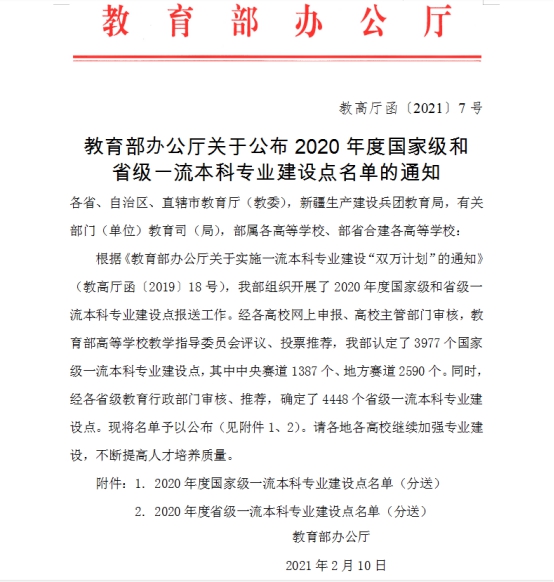 近日,从教育部办公厅公布的2020年度国家级和省级一流本科专业建设点名单中获悉,公司共有11个专业获批国家级一流本科专业建设点、18个专业获批省级一流本科专业建设点。其中,威廉体育williamhill日语专业入选国家级一流本科专业建设点。这是继公司《高级英语》课程获得首批国家级一流本科课程后,公司在专业和课程建设上取得的又一突破。