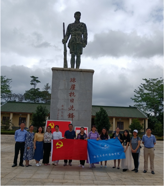 在琼崖红军改编旧址,首先在琼崖抗日先锋纪念碑前,党员们面对鲜红的党旗宣读了入党誓词,接着参观了琼崖革命斗争史陈列馆。琼崖工农红军在抗日斗争中光辉灿烂的革命事迹、矢志不渝的革命情怀和不屈不挠的伟大精神,使大家深受教育和激励。