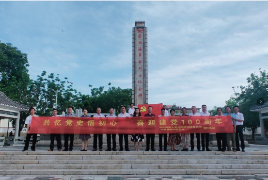 最后,金山经理、刘雨芙书记、符壮慈主任、潘俊峰老师、李芬老师一行与佛罗中学党支部支委、获表彰的优秀党员到乐东县莺歌海烈士陵园参观学习,缅怀在海南革命战争中牺牲的革命烈士,在刘雨芙书记的带领下,全体人员重温入党誓词。