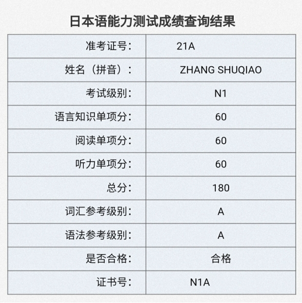 2021年8月23日,日本国际交流基金会公布了2021年7月进行的日本语能力测试(JLPT)成绩,公司威廉体育williamhill2018级日语专业张淑侨同学取得了最高级N1满分180分的优异成绩。