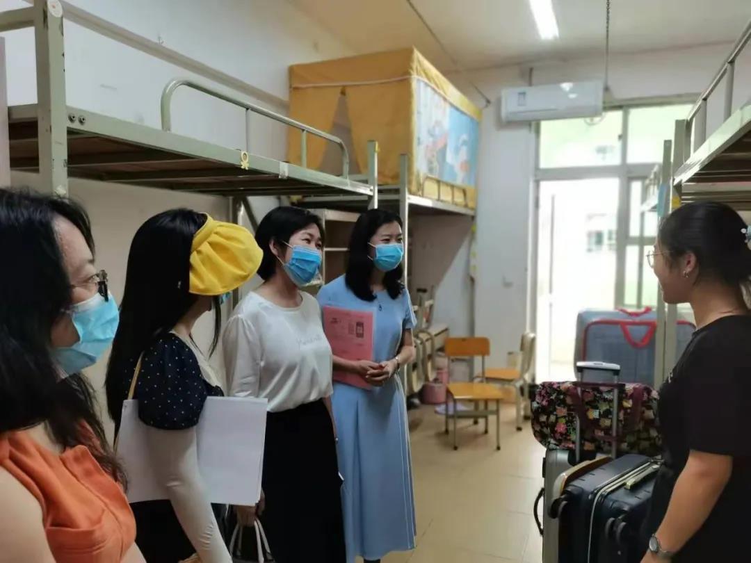 走访过程中,刘雨芙亲切的问同学们来到海南感觉怎么样?宿舍东西都收拾好了吗?老家是哪里的呀?告诉同学们在校期间有什么困难,都可以联系辅导员刘宇欢老师,让同学们在异地感受到了家的温暖。李洋还鼓励同学们一定要紧紧抓住大一的时间,好好学习,充实自己。