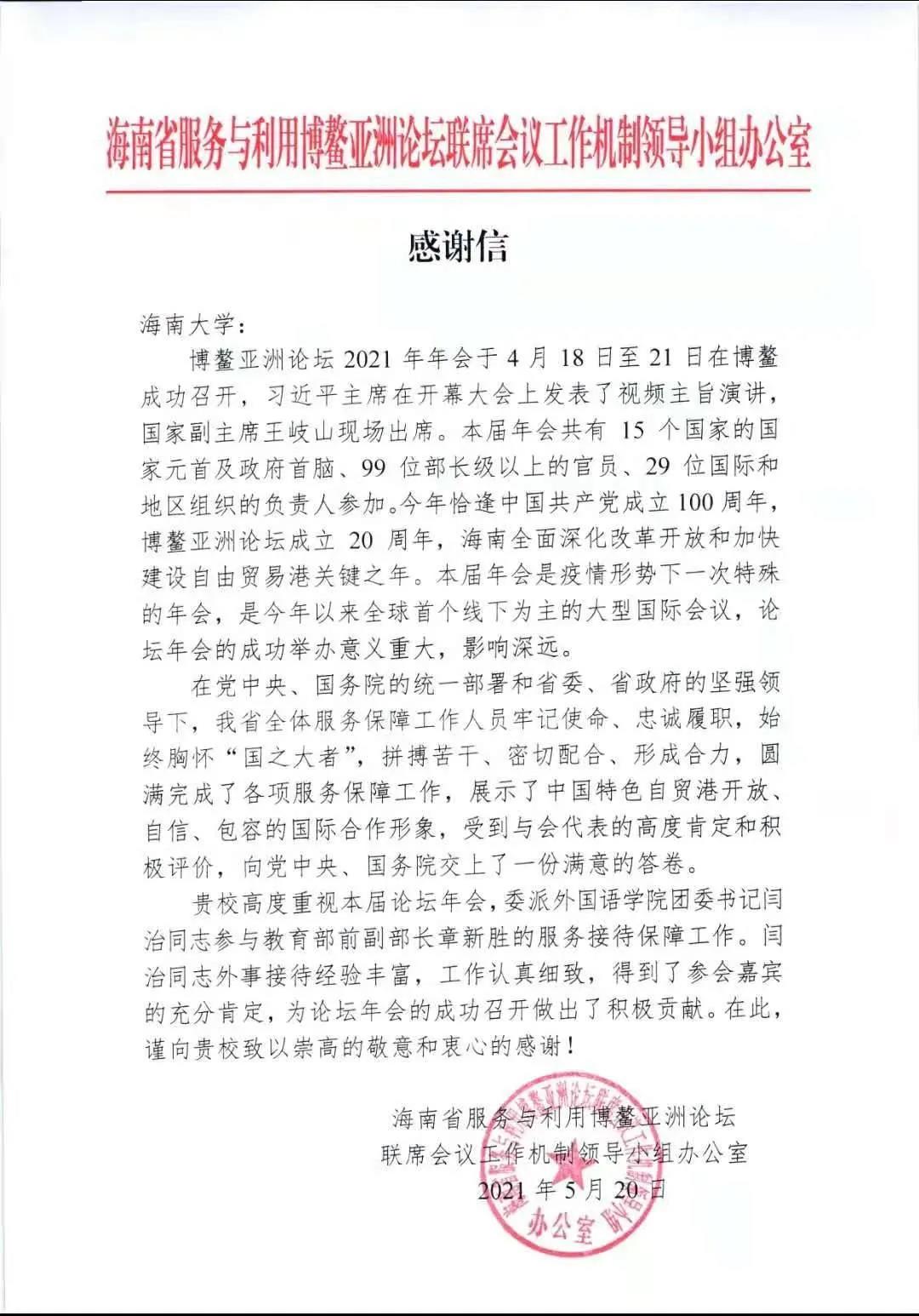 贵校高度重视本届论坛年会,委派威廉体育williamhill团委书记闫治同志参与教育部前副部长章新胜的服务接待保障工作。闫治同志外事接待经验丰富,工作认真细致,得到了参会嘉宾的充分肯定,为论坛年会的成功召开做出了积极贡献。在此,谨向贵校致以崇高的敬意和衷心的感谢!