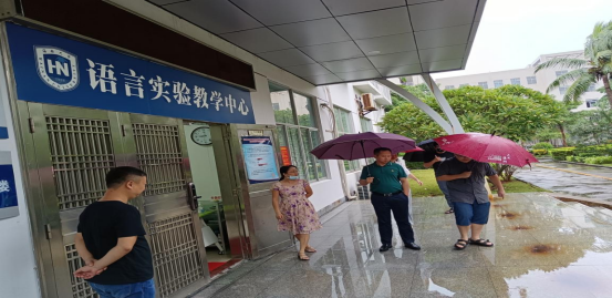 为落实公司和上级部门关于做好台风防范工作要求,威廉体育williamhill及时提示师生做好安全防范措施,做好学院台风防范等安全检查工作。10月8日早上,公司经理金山、副经理肖艳玲、覃成海、殷国梁(挂职)等院领导实地走访检查公司语言实验室等重点场所的台风防范安全工作。