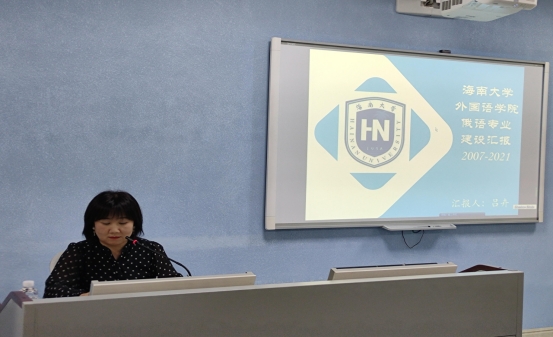 俄语专业吕卉主任从专业与社会需求的适应度;教师与教学资源的保障度;教学质量保障体系有效度;培养目标与效果的达成度;员工与用人单位的满意度5个方面深入介绍了专业建立15年来获得的成绩和经验。专业日常实行制度化管理;自编自改教材也获得业内认可;国内外著名院校对公司深造的员工给与了充分的肯定;就业率较高;用人单位满意度较高;在2020年获得海南省第一个对外俄语考试的考点的资格认证。